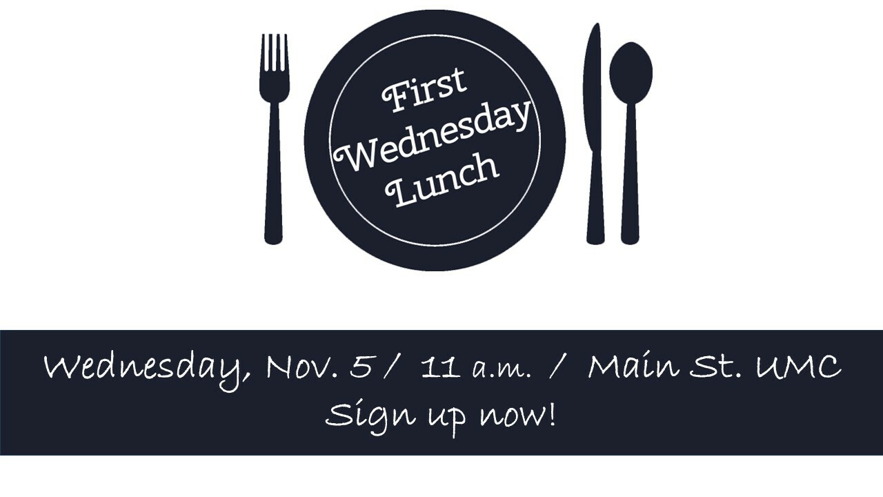 The First Wednesday Lunch for adults 55+ will be held Wednesday, Nov. 5, 11 a.m.-12:30 p.m. at Main Street UMC. Mississippi's Miss Hospitality will be the guest speaker.