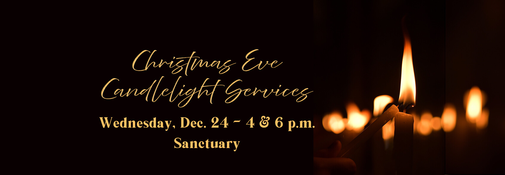 Celebrate the birth of our Savior at our Christmas Eve Candlelight Services. Two services will be held in the Sanctuary on Wednesday, Dec. 24, at 4 p.m. and 6 p.m. Everyone is welcome and invited to both!