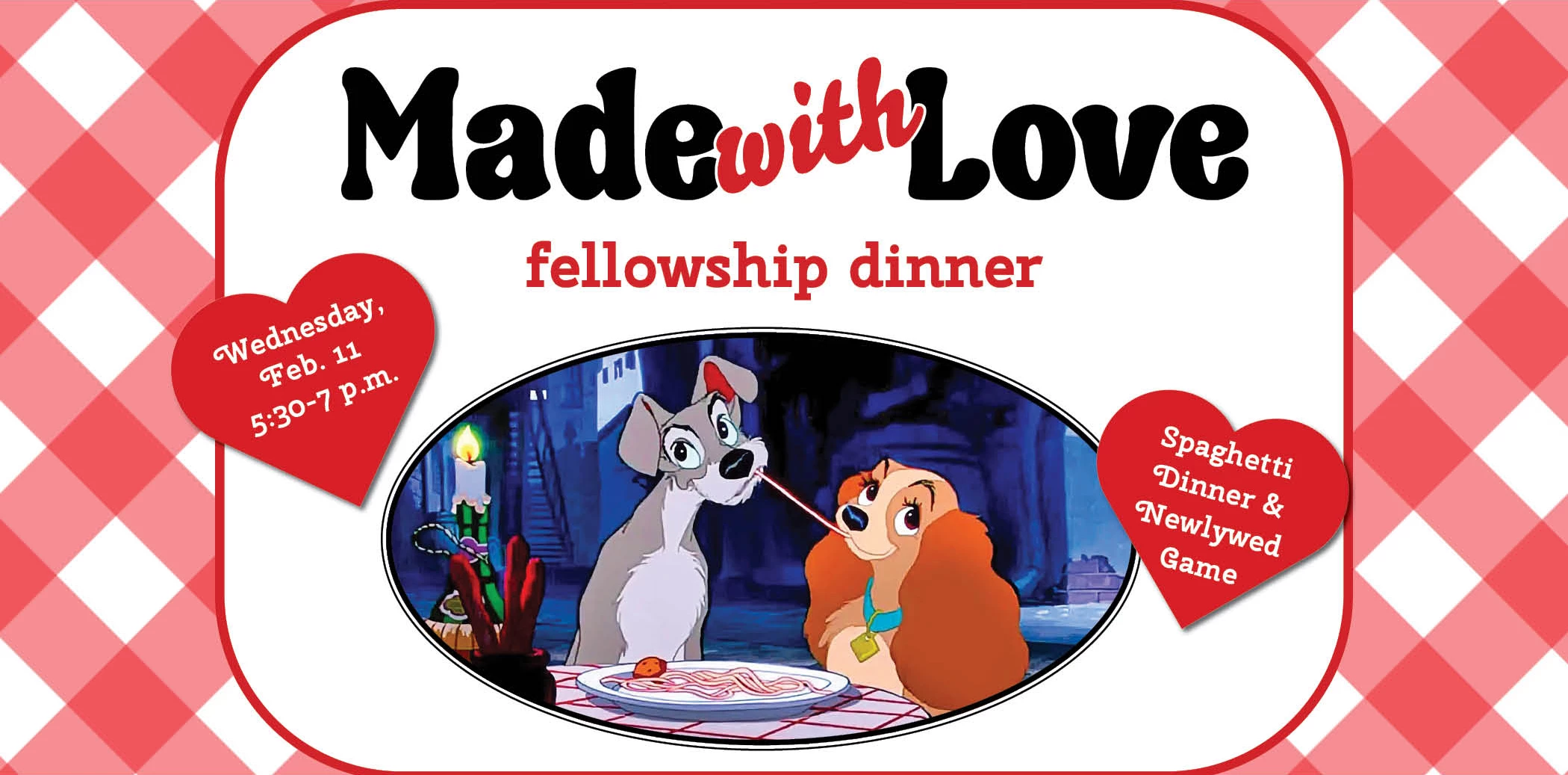 Celebrate Valentine's Day with us at "Made with Love," our Wednesday Fellowship Meal on February 11, 5:30-7 p.m., in Founders Hall. We'll enjoy some delicious spaghetti and meatballs and then have tons of fun with the Parkway Heights' Newlywed Game! Don't miss it! Cost is $5 per person, with a family maximum cost of $20. College students eat free. Please sign up by February 8.